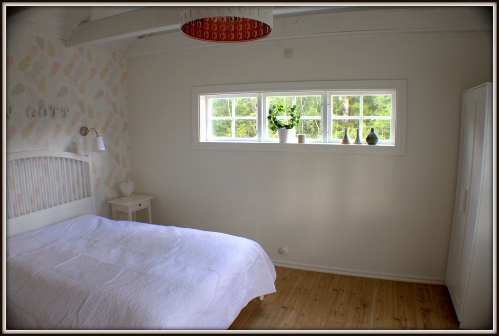 Möbel und Einrichtung sind in weiß und lassen alles hell und freundlich erscheinen. Hier schlaft ihr wie im Himmel - oder wie wir in Schweden sagen: "sov gott".